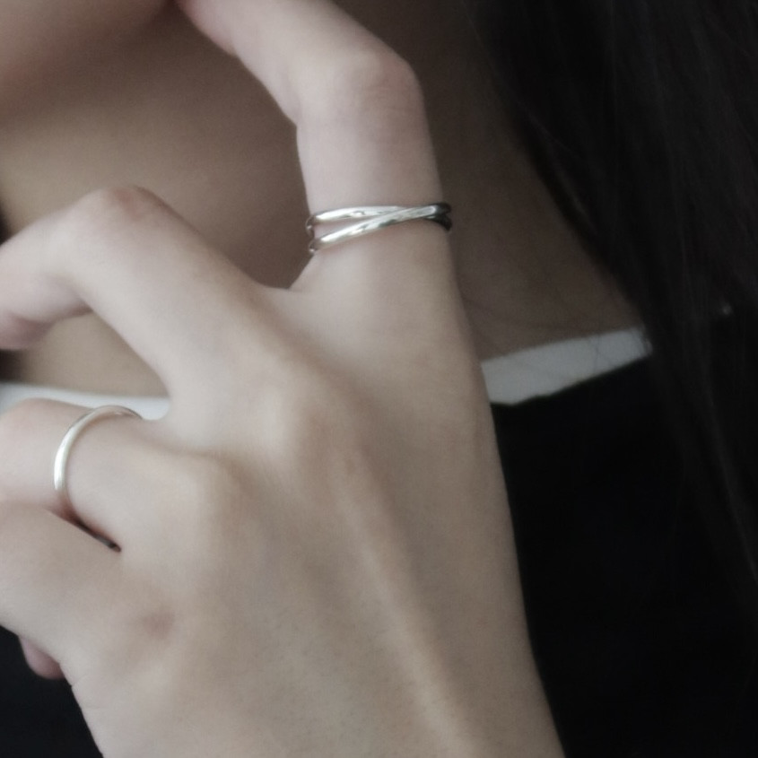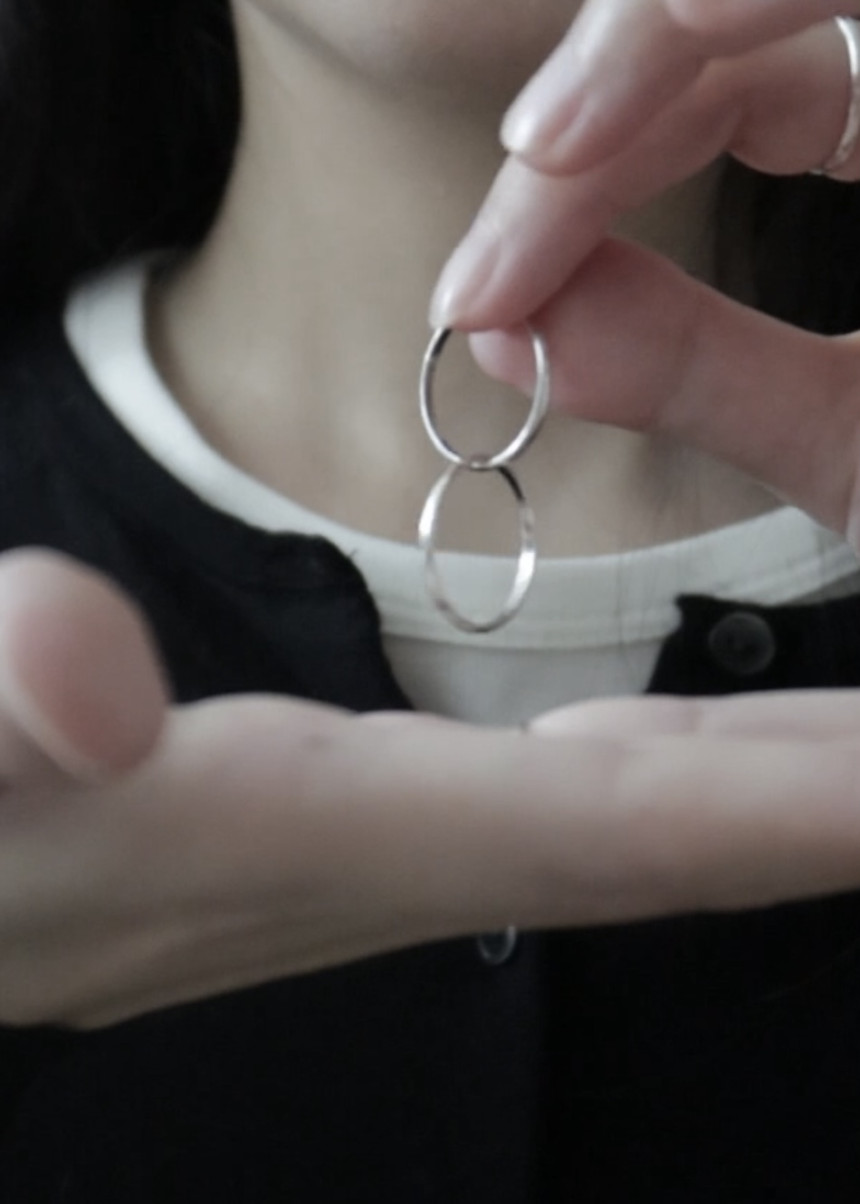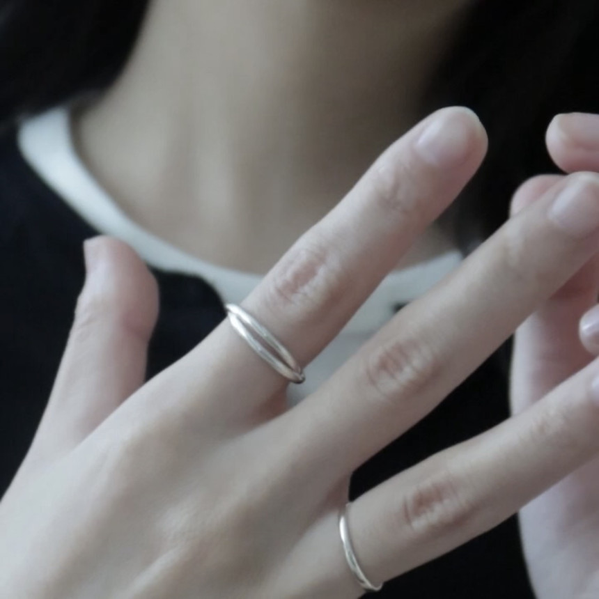 얇은 링 반지 두 개가 연결된