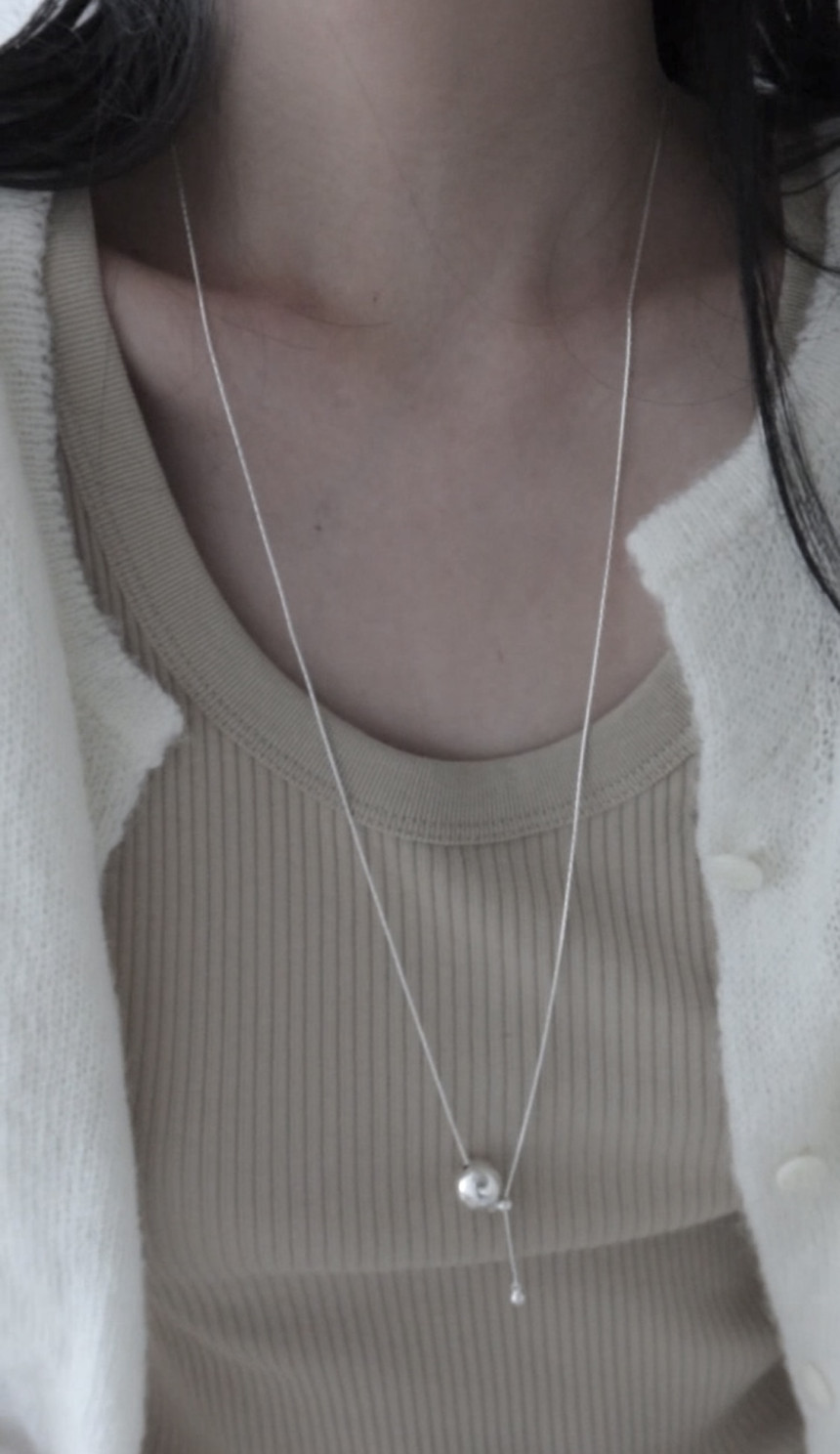 무드가 돋보이는 은목걸이에요.