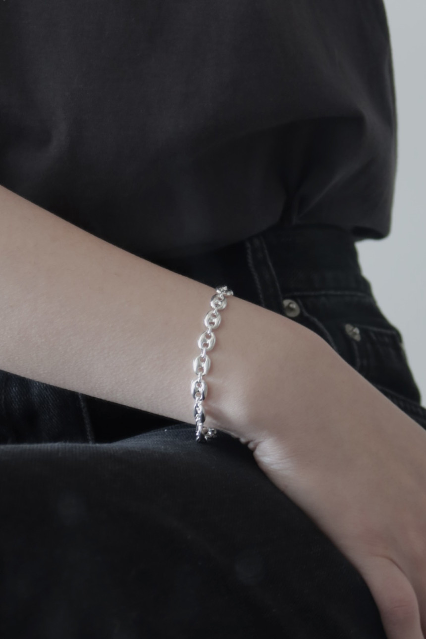 포인트 되는 은 체인 팔찌에요.