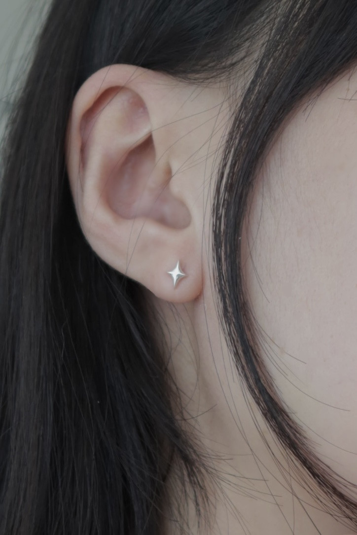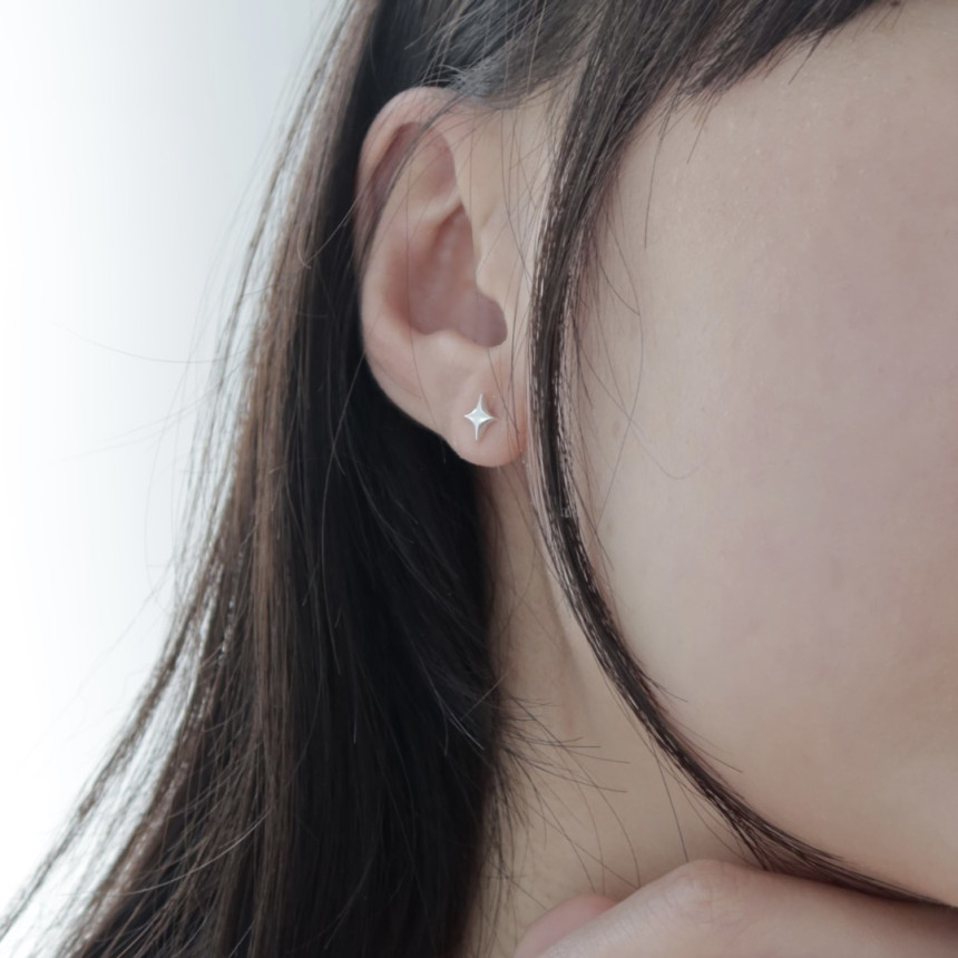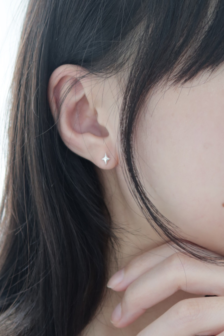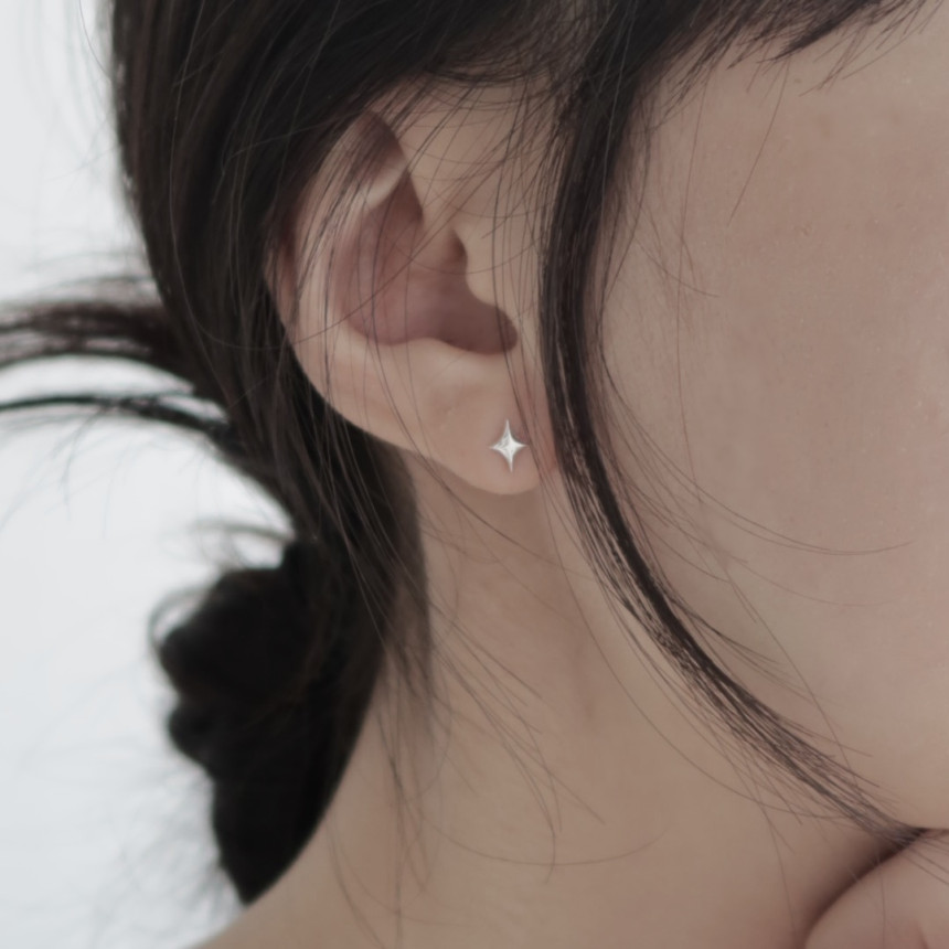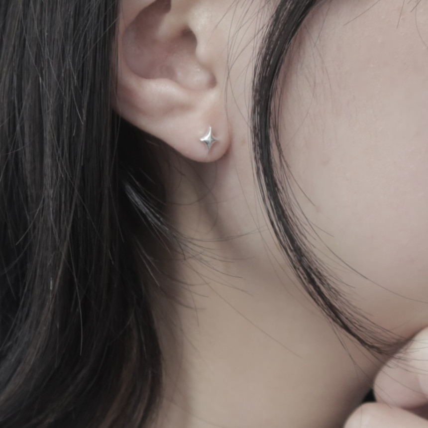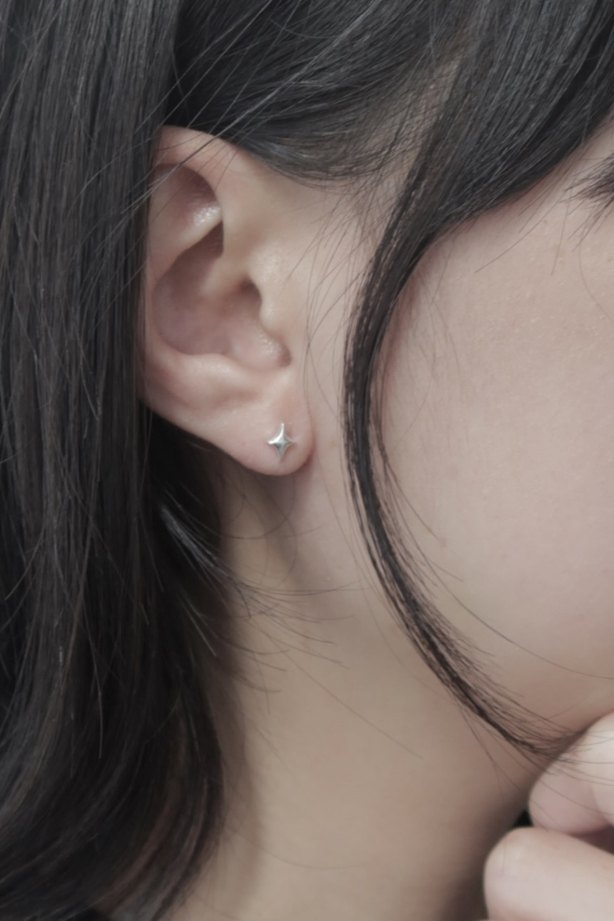실루엣으로 한층 더 살린 은 귀걸이에요.