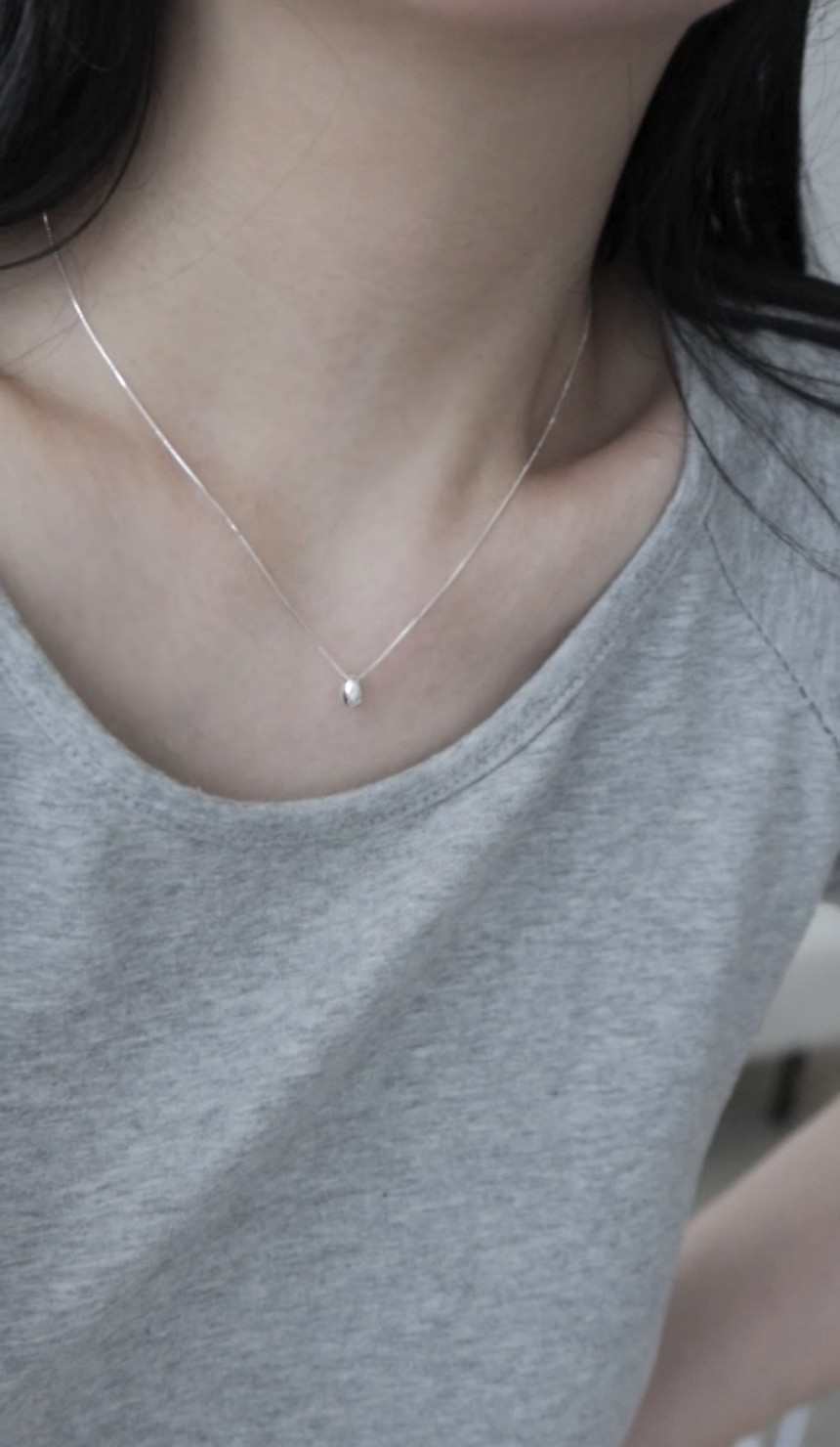 포인트 된 은목걸이에요.