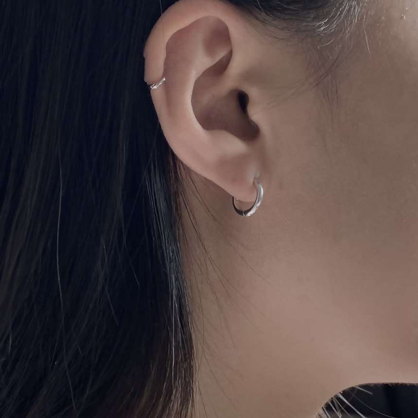 깔끔한 기본 라인의 링 실버 귀걸이입니다.